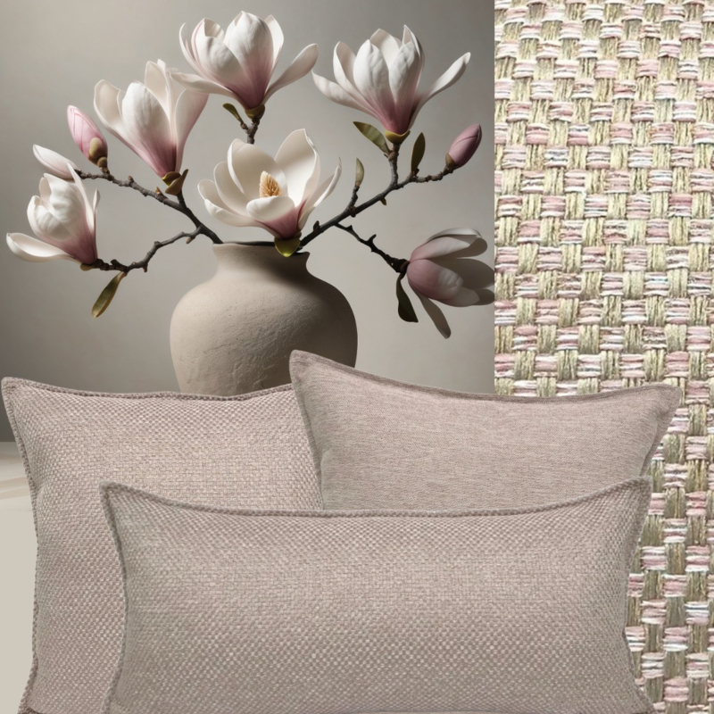 Esperanza Deseo ® kussen - Linnen meubelstof met fijne lus - Taupe met zacht roze ± 45x45cm
